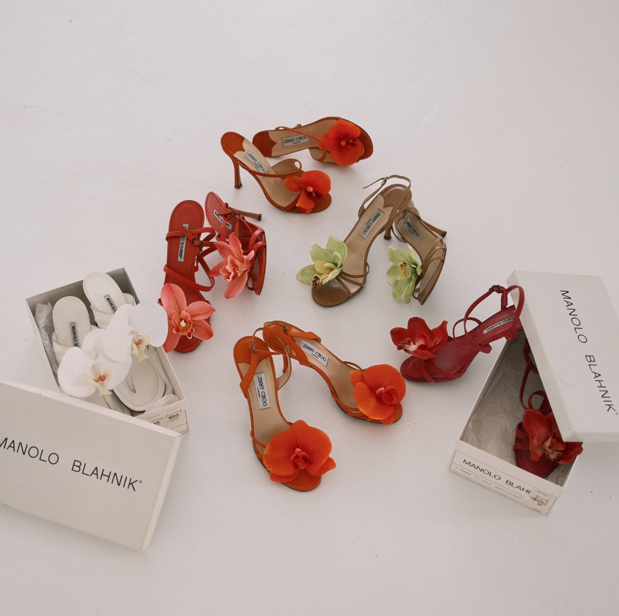 - Brand/designer, colors, style of flowers/adornment (for up-cycled shoes)