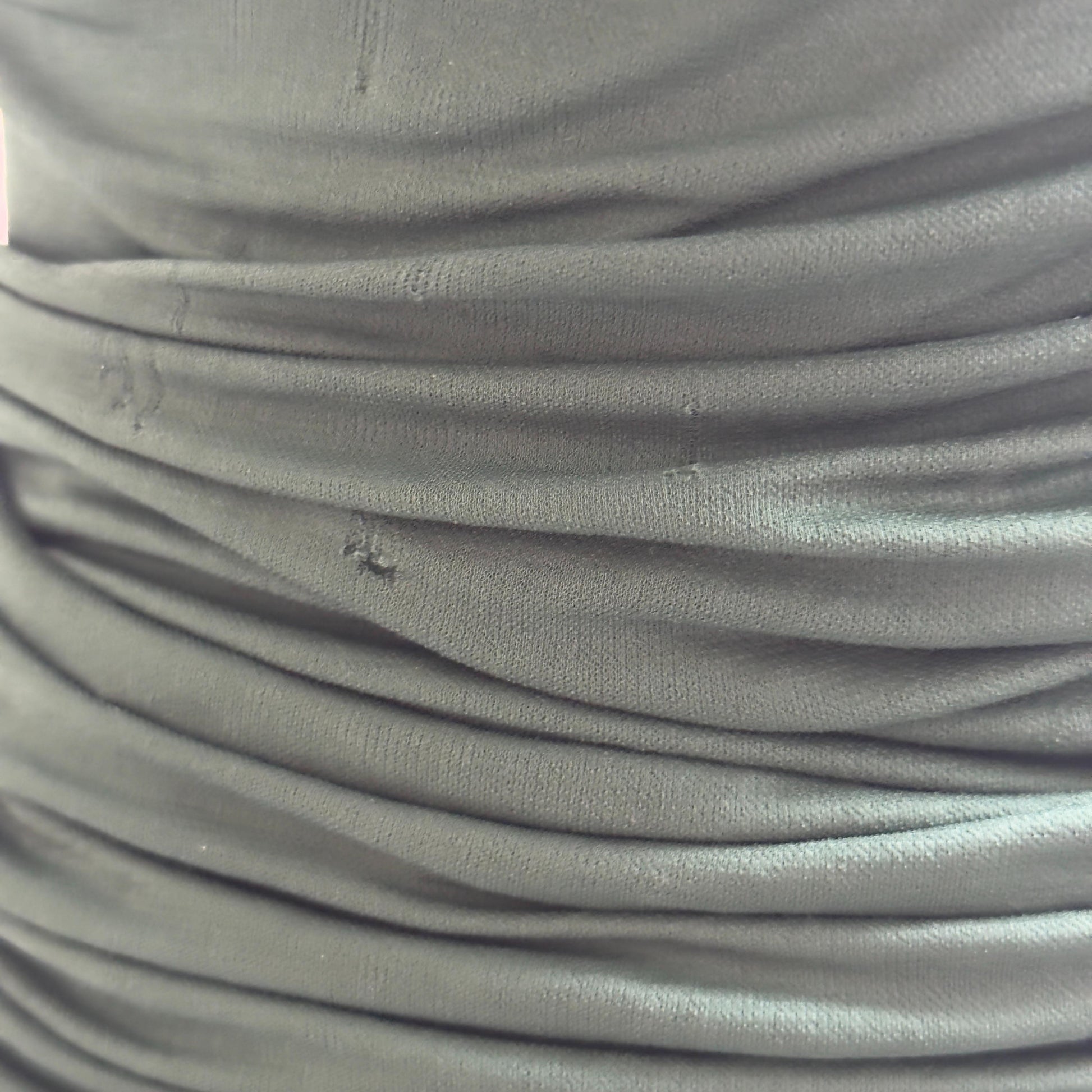 In fair condition with some small holes as pictured (but not noticeable due to ruching detail).Fits size small (runs true to size).